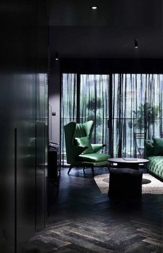 本案例的业主是一对30+的夫妻,父母也常过来一起住。他们追求精致,倾向于暗黑系的装修风格。暗,则静谧;暗,则隐蔽;暗,则神秘。